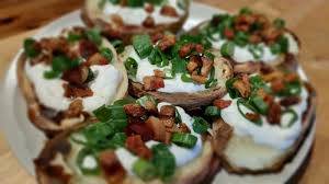 Szurkáljuk meg a burgonyákat egy éles késsel vagy villával, majd főzzük őket 15 percig egy 800 W-os mikróban. Ezután hagyjuk állni 15 percig, majd vágjuk félbe és belsejüket kanalazzuk ki egy tálba. Ezután tegyük az Airfryerbe és süssük 7 percig 180 celsius fokon.
