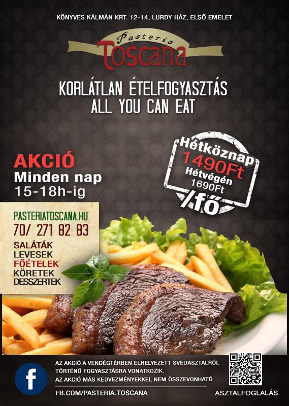 Látogasson el hozzánk és legyen részese egy olasz sziesztának a nap bármely szakaszában! Továbbá ideális helyszínt biztosítunk üzleti találkozójához legyen szó egy kávéról vagy ebédről. Korlátlan ételfogyasztás minden nap 15-18h-ig!