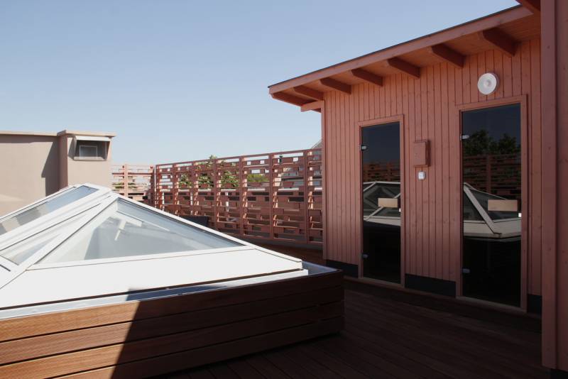 Körpanorámás Wellness Tetőteraszunkon kialakított finn- és infra szaunáink az év egészében működnek.