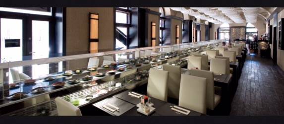 A "futószalag", melyen az ételek érkeznek két részre osztható. A felső rész, mely fűtött, a meleg ételeket kínálja, és az alsó, mely hűtött, a hideg ételeket juttatja el a vendéghez. Húsos és vegetáriánus étek, rizs és tészta alapú ételek, hideg és meleg desszertek, saláták, gyümölcsök, főételek, sültek érkeznek.